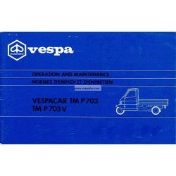Dieses sehr nützliches Dokument enthält Leitlinien für den täglichen Gebrauch Ihres Fahrzeugs und die regelmäßige Wartung durchzuführen Piaggio Ape TM P703V. Mod. ATM2T N°