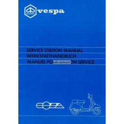Documentación para la reparación de su vehículo Vespa Cosa 1988 - 1991 Vespa Cosa 125 mod. VNR1T, Vespa Cosa 150 mod. VLR1T, Vespa Cosa 200 mod. VSR1T N° 405007 1987 Francés, Aleman, Inglés