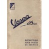 Description : Moteur – Carburateur – Refroidissement – Transmissions, Manettes – Châssis et direction – Suspensions élastiques – Installation électrique – Allumage – Tableau de lubrification de la moto « Vespa » 125 cc. – Schéma de lubrification