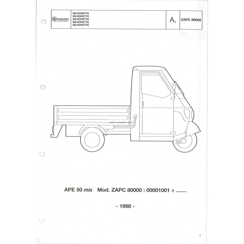 Catalogo de piezas de repuesto Piaggio Ape 50 MIX Mod. ZAPC 1998