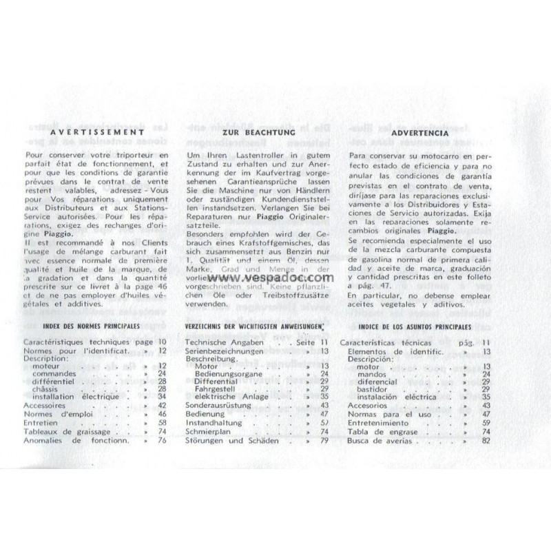 Normas de Uso e Entretenimiento Piaggio Ape C 150 mod. AC1T, AC2T, AC3T, AC4T