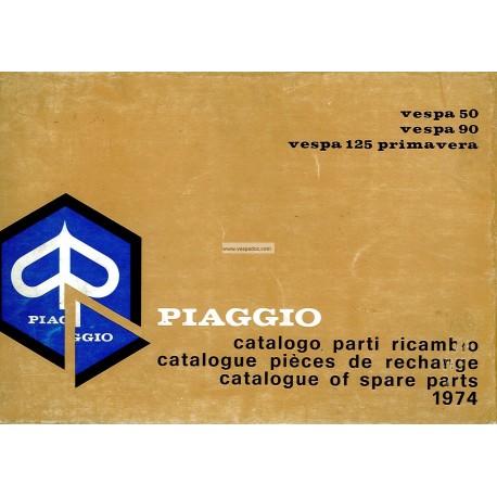 Catalogo de piezas de repuesto Scooter Vespa 50, 50 S, 50 Special, 50 Elestart, 90, 125 Primavera, 1974