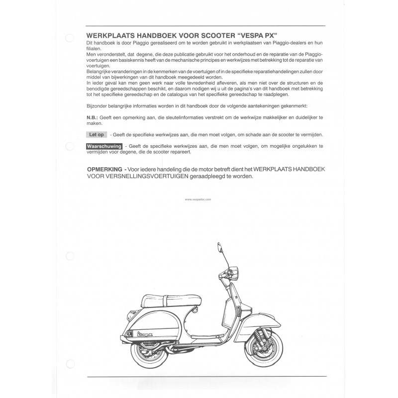 Manual Técnico Scooter Vespa PX Freno a Disco 1997, Francés, Aleman, Holandés