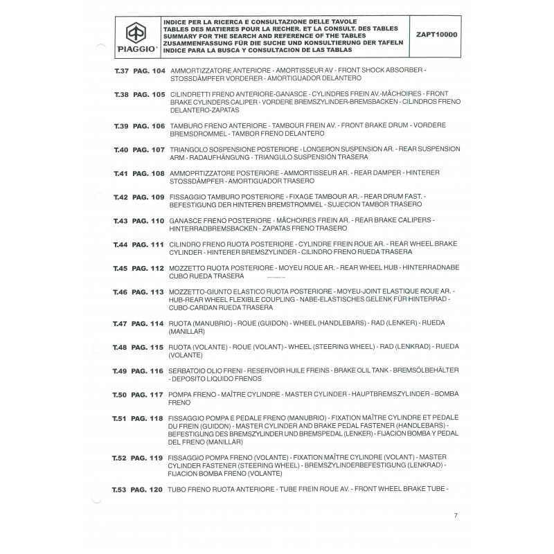 Catalogue de pieces Piaggio Ape TM D LCS Mod. ZAPT
