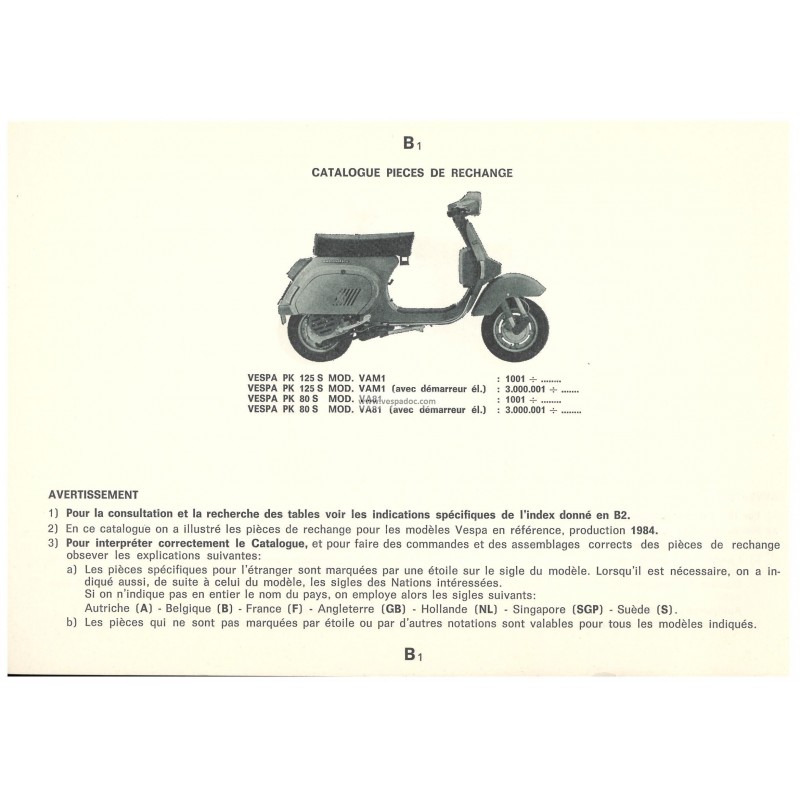 Catalogue de pièces détachées Scooter Vespa PK Automatica, Vespa PK 80 S mod. VA81T, Vespa PK 125 S mod. VAM1T