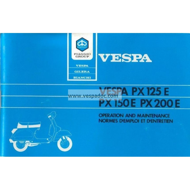 Notice d'emploi et d'entretien Vespa PX 125 E, PX 150 E, PX 200 E, Arcobaleno