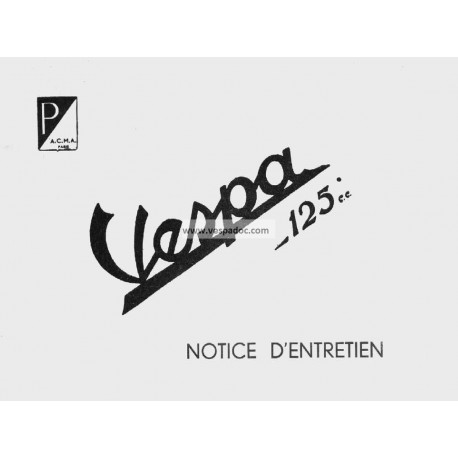 Présentation – Schéma des commandes – Normes d'identification – Caractéristiques principales – Accessoires – Mode d'emploi - Description du moteur – Description de la coque – Schéma d'implantation électrique – Boîte de vitesse - Normes d'utilisation – Entretien – Tableau de lubrification de la moto Vespa 125 cc – Recherche des détraquements et des irrégularités de fonctionnement – Principaux temps moyens prévus pour effectuer les Opérations de révision sur Vespa – Période de rodage