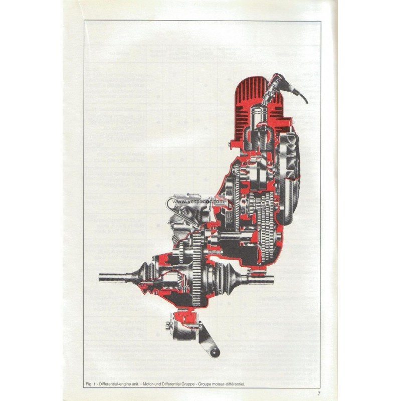Remontage: Remontage moteur- différentiel – Calage du moteur et contrôle du calage – Direction et suspension avant – Tambour frein roue avant – Suspension arrière – Tambour frein roue arrière – Contrôles consommation sur route – Mise à point du véhicule – Outillage pour démontage, révision et remontage
