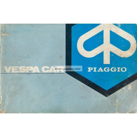 Maintenance : Battery – Adjustment on carburettor – Access to engine from the open box body – Cleaning the air filter – Sparkplug removal – Dismantling cylinder head – Check the dynastarter belt tension – Changing oil in the group gear case differential – Top up oil level in master brake cylinder oil tank – Brake checking and adjustment – Timing setting – Setting the headlamps – Periodical maintenance – Battery maintenance