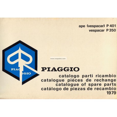 Catalogue of Spare Parts Piaggio Ape P350 125 cc AEO1T, P401 175cc AE3T, 1979