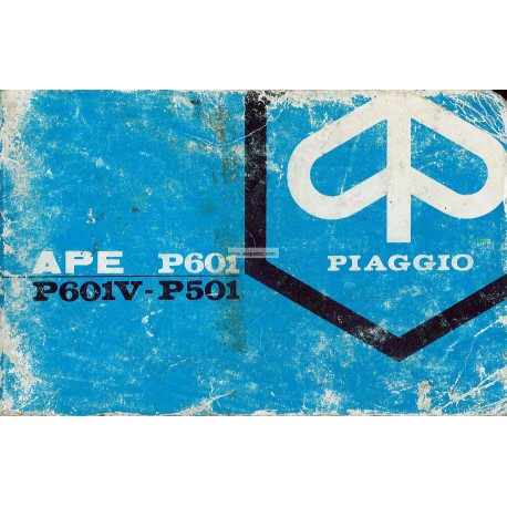 Operation and Maintenance Piaggio Ape P501 mod. MPR2T, Ape P601 mod. MPM1T, MPM2T, Ape P601V mod. MPV1T, MPV2T, Italian