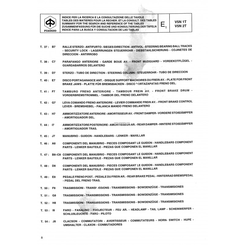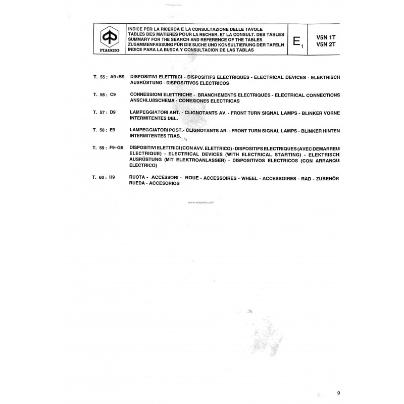 Catalogue of Spare Parts Scooter Vespa 50 FL2, Vespa 50 V5N1T, Vespa 50 HP V5N2T, 1990