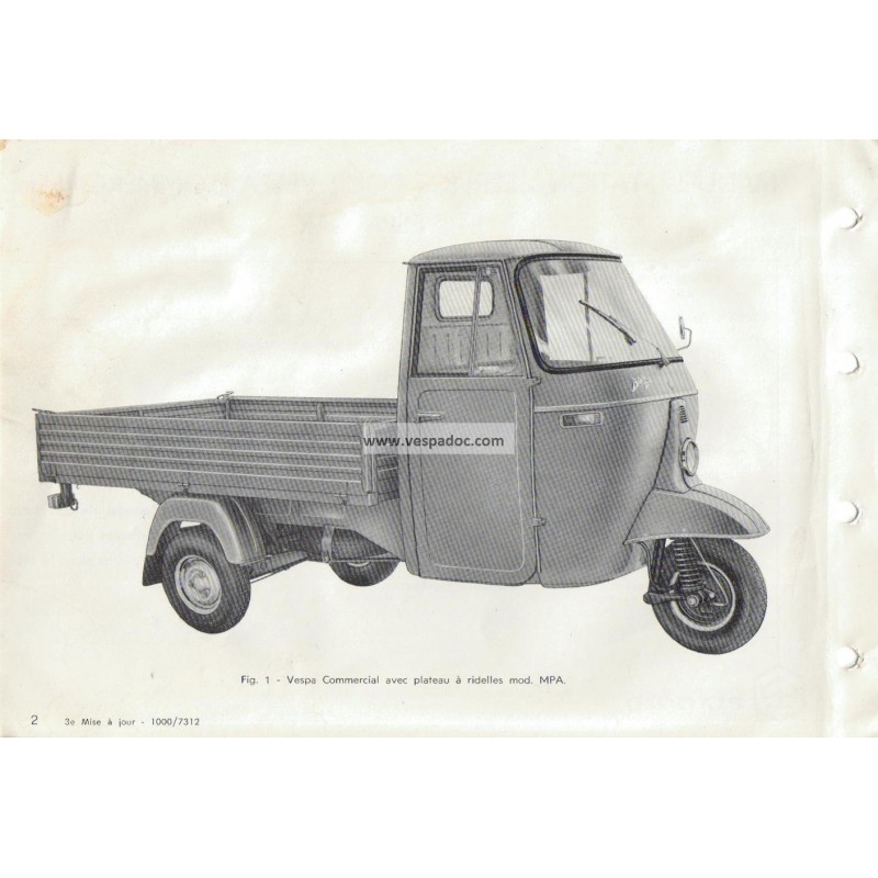 Manuale per Stazioni di Servizio Piaggio Ape MP, Ape 500 mod. MPA1T, Ape 600 mod. MPM1T et MPV1T, Vespacar P2, mod. AF1T