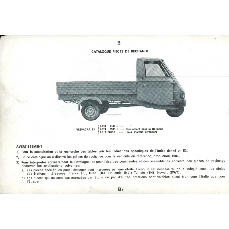 Catalogo delle parti di ricambio Piaggio Ape, Apecar, Vespacar P2, 1983