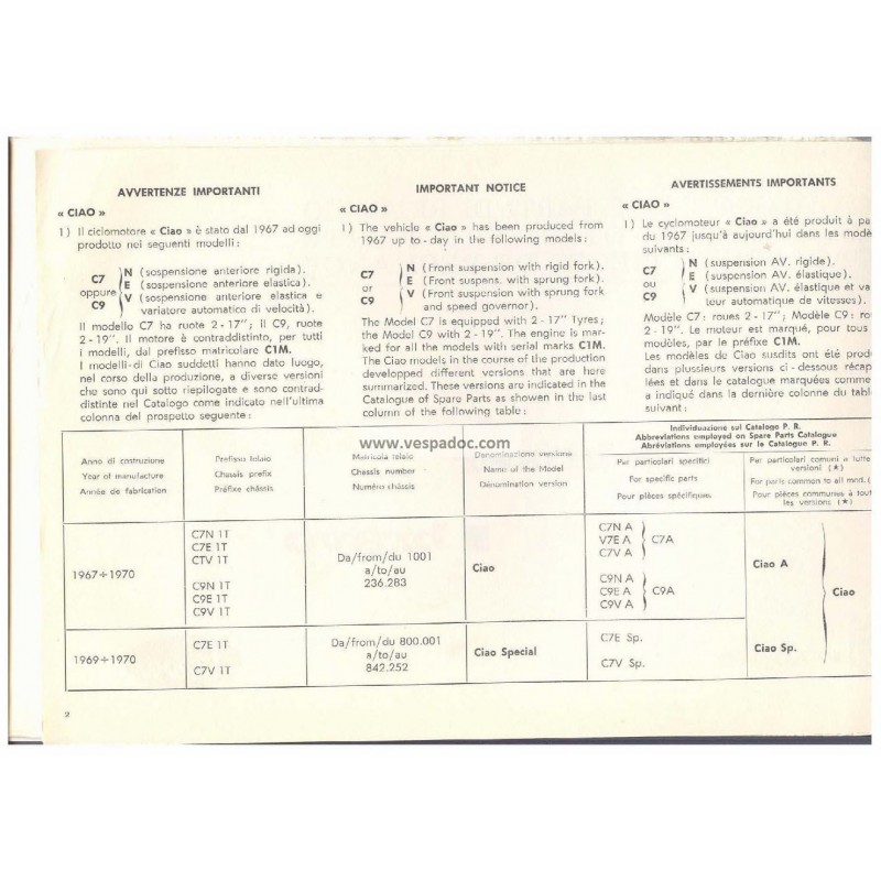 Piaggio Ciao mod. C7N1T, C9N1T, C7E1T, C9E1T, C7V1T, C7V2T, C7V3T, C9V1T,